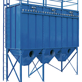 含塵氣體由進氣口進入灰斗或通過敞開法蘭口進入濾袋室,含塵氣體透過濾袋過濾為凈氣進入凈氣室,再經凈氣室排氣口,由風機排走。粉塵積附再